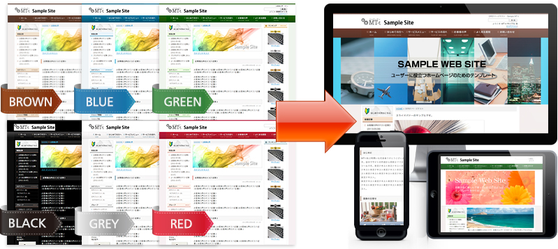 カスタマイズ可能な6通りのベースデザインパターンがあるため、テンプレートを使っているにもかかわらず、オリジナルデザインのホームページの様になります。